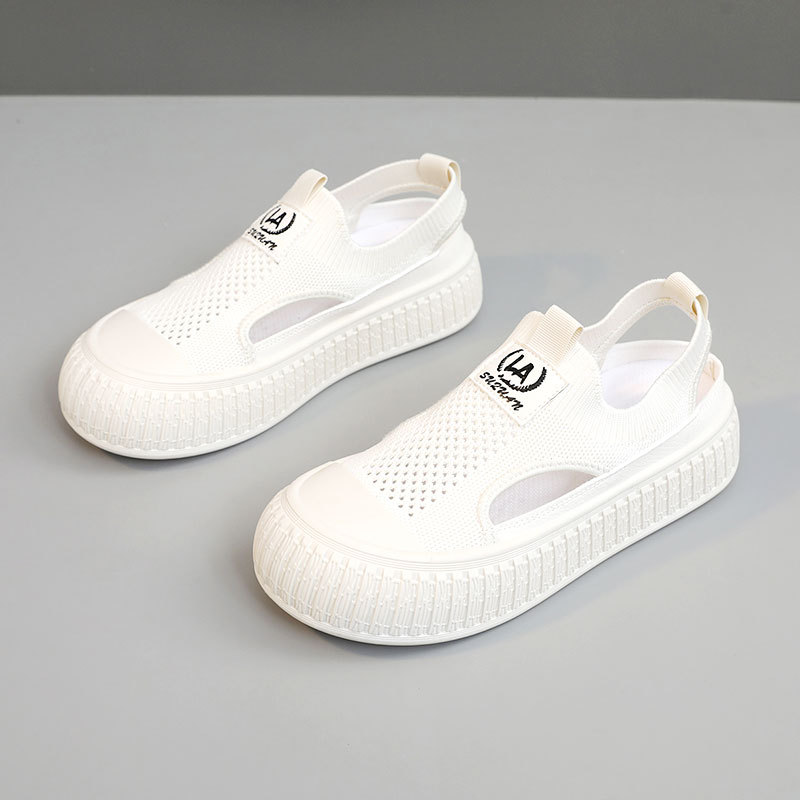 Spring and summer mesh breathable round toe solid color casual shoes increased thick sole sneakers student shoes